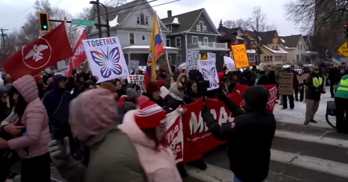 Dẫn đầu đoàn người là một nhóm vũ công Mexico bản địa, những người biểu tình tiến về con phố nơi Good bị bắn khi đang ngồi trong xe hơi. Đám đông hô vang tên nạn nhân cùng các khẩu hiệu như “Giải tán ICE” và “Không công lý, không hòa bình – đuổi ICE khỏi phố chúng tôi”.
